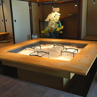 お洒落な古民家風の空間で温かい炭火を囲む、至福のひと時を