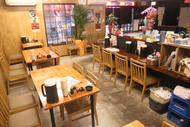 店内はどこか懐かしさを感じる昭和レトロな雰囲気。大将の威勢の良い「いらっしゃい!」と「ありがとうございました!」が気持ちよく、温かみある接客も大きな魅力です。