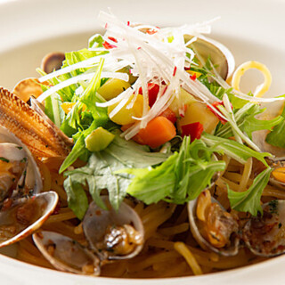 石窯で一気に高温で焼き上げたピッツァは、外はカリっと中はもちっとした食感!素材本来の味や香りをお楽しみいただけます。また、イタリア産の小麦粉にこだわったパスタは、手打ちなのでもちもち!フィットチーネやタリオリーニ、旬の食材を練りこんだパスタなどご用意しております!