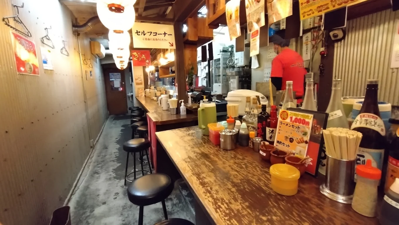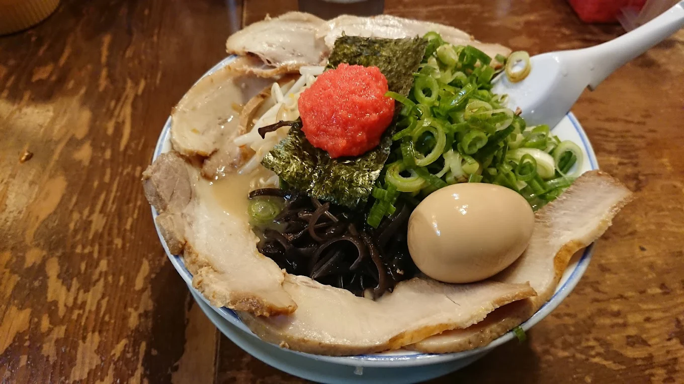 麺の硬さは6段階から選べ、卓上の高菜や調味料で自分好みに味変可能。深夜でも行列ができるほどの人気で、〆にも飲み会にもおすすめの一軒です。