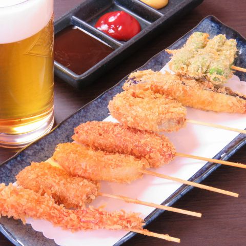 全12種類の中でも特におすすめはジャンボアスパラ一本揚げ!全長約25cmのアスパラをマルッと揚げています。その美味しさと豪快さを堪能していただけます!また、ソーセージは赤ウィンナーではなく豪華に、シャウエッセンを使用しています!