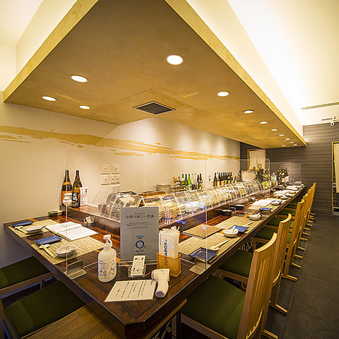 季節感じる逸品とこだわりの日本酒で、心を込めておもてなしいたします。板場の臨場感を味わえるカウンター席は、優美で洗練された雰囲気。職人の包丁さばきを目の前に食すお料理はまた格別です。
