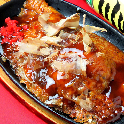 1977年の創業以来、不動の人気をほこるちょぼ焼き。他のどの店にも負けない伝統の味!広島風の薄い生地にキャベツ・たくあん・豚バラなどをのせて、半分に折り曲げた自慢の一品!