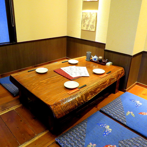 プライベートシーンな少人数利用の掘り炬燵席、お座敷席もございます。また個室席もございます。靴を脱いで上がる店内は、人数に合わせてテーブル席を変更可能!貸切も承れますので、お気軽にお問合せください!