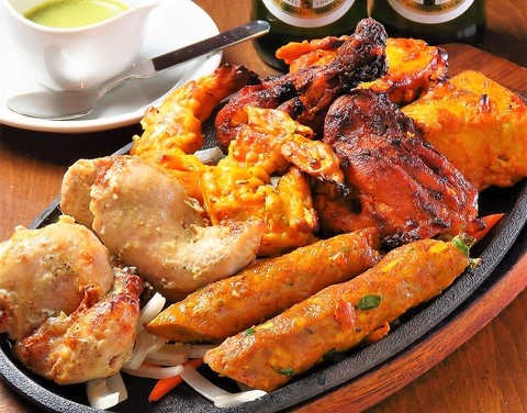 タンドリーチキンはなんと炭火焼き!香ばしい5種類のチキンを盛り合わせたジャイプール自慢の一品!本場の料理人が心を込めて作るインド料理です。