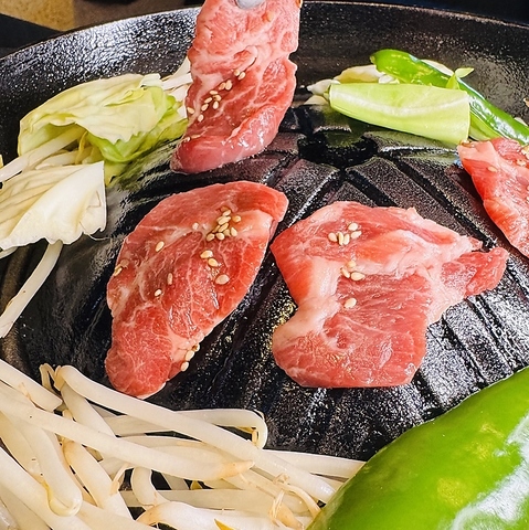 当店一番人気の看板メニュー!厳選生ラムを赤ワインベースの秘伝ダレにじっくり漬け込み、旨みと香りを最大限に引き出しました。鉄板で焼くことで赤ワインがふわっと香り、やわらかい肉汁が野菜と絡みます。あっさりタレでカロリーを気にせず楽しめます!