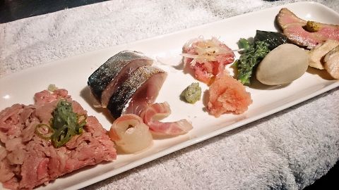 おすすめの前菜を盛りだくさんに楽しんでいただけます♪一例:和牛の冷菜、お造り、茄子の煮物、海老芋の旨煮、地鶏の蒸し鶏、合鴨ロース
