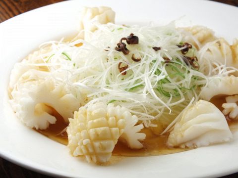 コリコリとした食感が特徴的なモンゴウイカを、醤油ベースの甘酸っぱい特製中華ダレに漬け込みました!