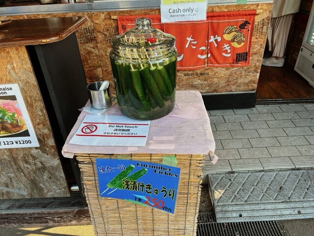 夏季限定の浅漬けきゅうりも人気で、ひんやり冷たく食べ歩きにぴったり。新鮮な味わいが楽しめる一品で、観光で疲れた体に嬉しいサッパリ感をプラスしてくれます。歩きながらつまむのに最適です。
