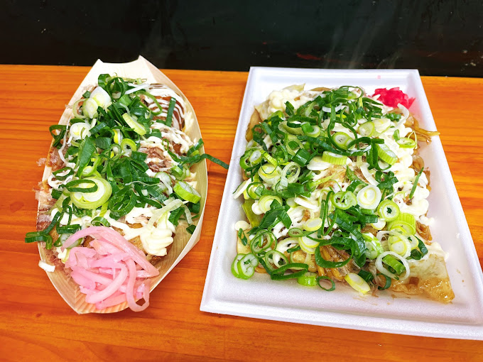 嵐山駅から徒歩2分の《歌ぶ伎》は、ボリューム満点のたこ焼きや焼きそばが楽しめる人気店。特にネギマヨたこ焼きは、たっぷりの九条ネギとマヨネーズが絶妙に絡み、フワトロの食感が堪能できます。観光の合間に立ち寄りたくなる美味しさです。