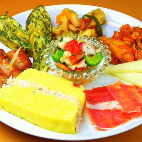 店舗紹鎌倉美学オススメのタパスを7種類盛り合わせたボリューム満点のメニュー!一度にたくさんのメニューを楽しめるから本当に人気!!タコと海老のマリネやスペイン風オムレツなど、人気メニューをワインと一緒にどうぞ!介文4行以上