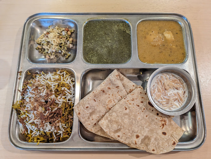 料理だけでなく、特製スイーツも魅力的。バナナ入りのワダは、ハルワに匹敵する美味しさで、スパイスとのバランスが絶妙な甘さ控えめの一品です。
