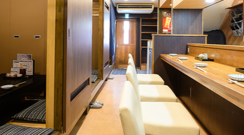 | 席数 | 64席 (1Fカウンター4席、掘りごたつ30席、2F座敷25席(4・6・12・16・最大25名様用)) |
