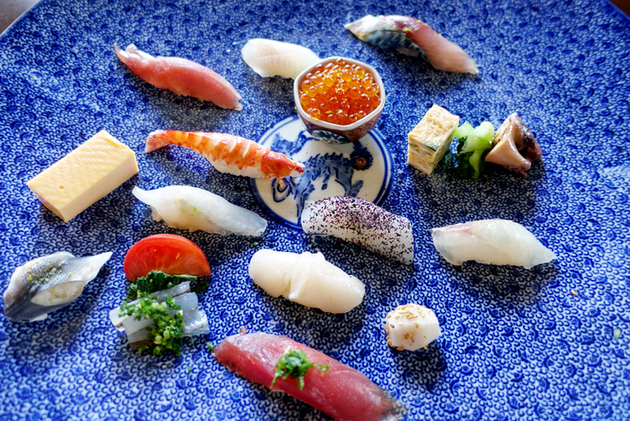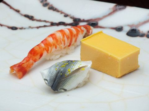 コハダ、車海老、玉子。食材は天然しか使わない親方の徹底したこだわり。親方のおまかせで握っていただくのがオススメです!