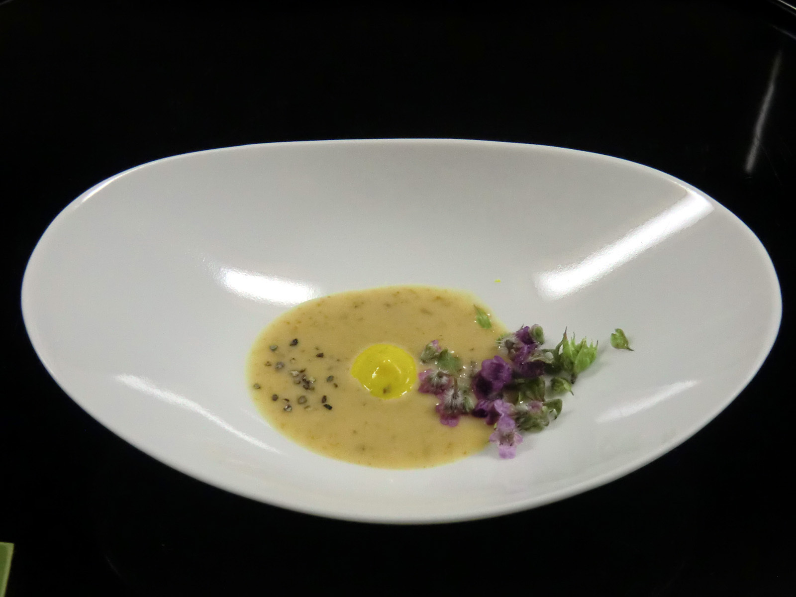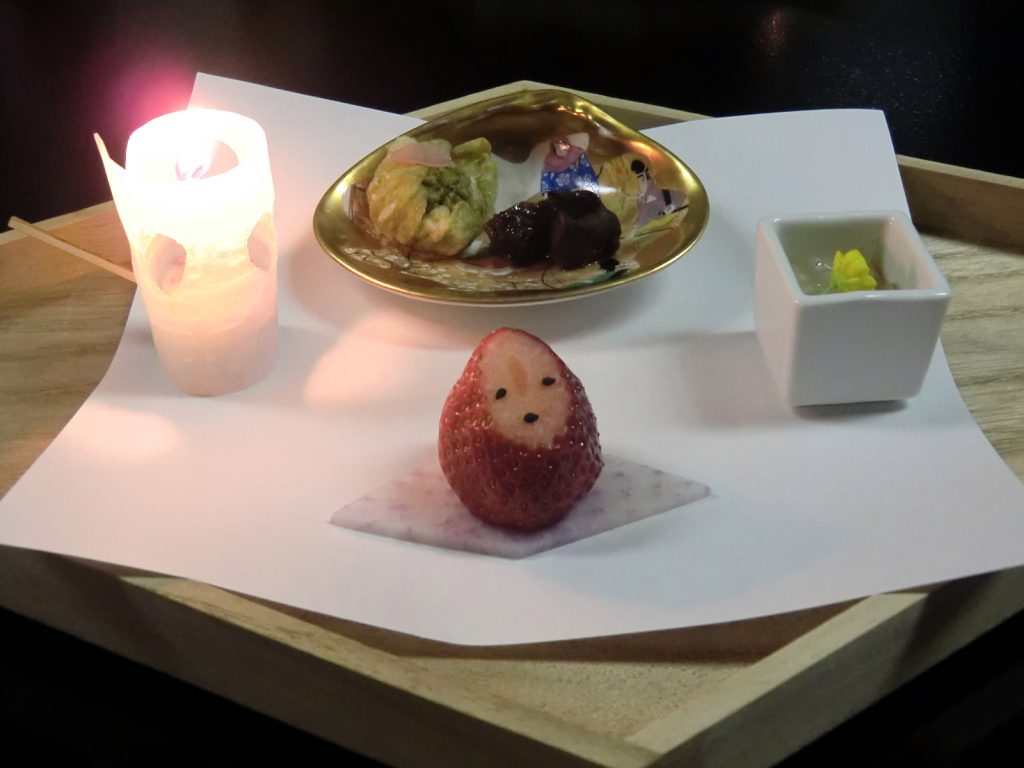 食用酸漿と西瓜のデザート、複雑な香りと驚くほどの甘さが調和する絶品。細部にまでこだわるお料理の数々で、心も満たされる一軒。