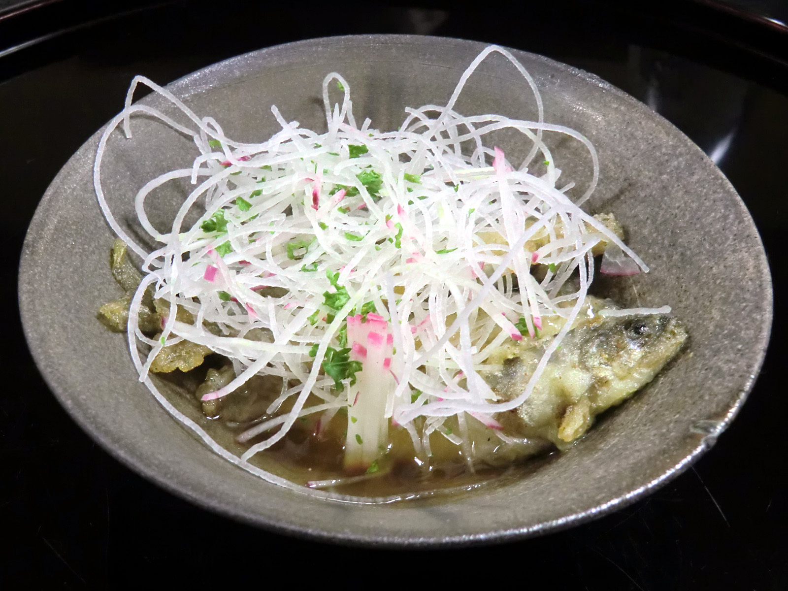八寸からデザートまで10品、全てが贅沢な味わい。鯨のトロのお造りや香箱ガニの天ぷら、群馬では珍しい食材も堪能できる。