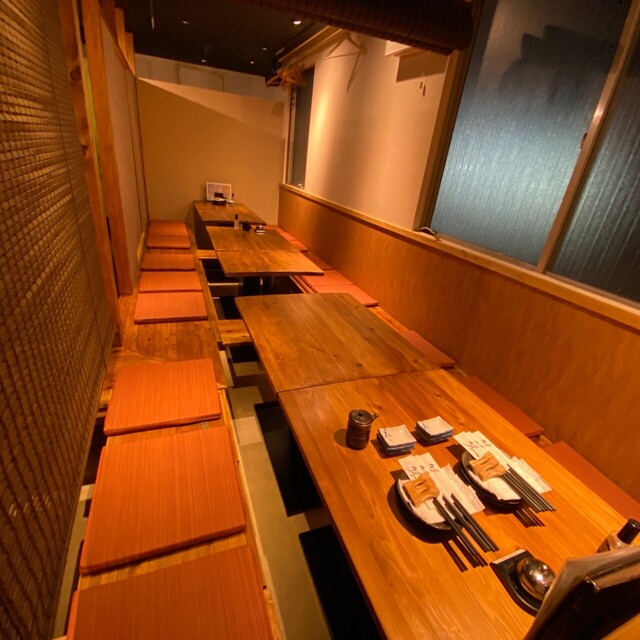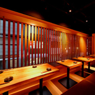 和テイストの上質なおしゃれ空間。16名様収容可能なソファー個室、24名様収容可能な掘りごたつ式座敷、30名様~50名様程度で店内貸切対応致します。大規模な宴会などでの利用に最適です。当店は【完全予約制】となっておりますのでお越しの際は必ず前日までに御予約下さいませ。