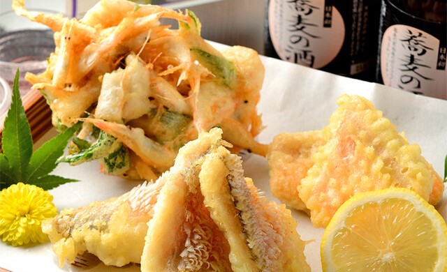 土日祝は昼から営業しており、昼飲みにもぴったり。カラッと揚げたジューシーな天ぷらは、料理長が厳選した旬素材を使用した自慢の逸品。シンプルだからこそ素材の良さが際立ちます。飲み放題付コースは税込3,500円からと充実し、予算に合わせた宴会利用にもおすすめです。