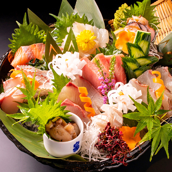豊橋駅徒歩2分の好立地に佇む、全席完全個室の和風居酒屋。市場直送の鮮魚を使用したお造りや寿司は、素材本来の旨みを存分に味わえる逸品です。接待や歓送別会、誕生日会など幅広いシーンに最適。最大50名まで対応可能で、落ち着いた和の空間でゆったりと海鮮料理をお楽しみいただけます。