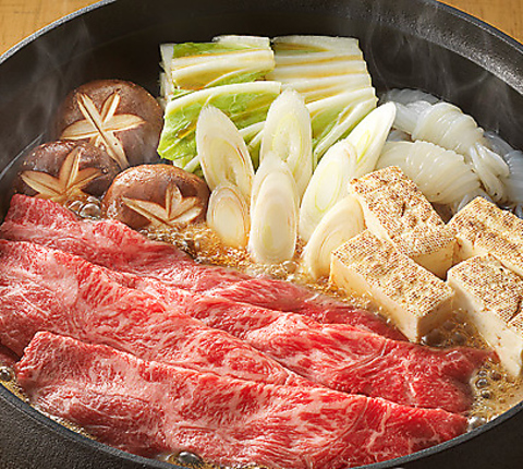 農家が丹精込めて育てあげた食材を、 秘伝の割りしたで「ふつふつ」と上品に炊き上げます。素材一つ一つの旨味を引き立てる割りしたで、ご賞味ください。お祝いや記念日に、にっぽんのご馳走『すき焼』を囲んで楽しいひと時を。