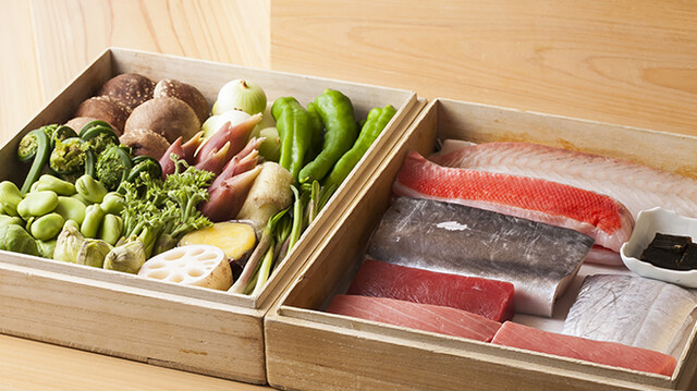 日本料理と江戸切子に囲まれた落ち着いた空間。料理は季節ごとに変わるお任せコースがおすすめ。料理人の心意気が感じられる一皿一皿が、心に残る贅沢なひとときを約束します。