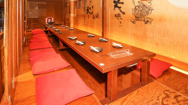 店内は、テーブル席、個室、掘りごたつ席と様々な席タイプをご用意。4〜12名様でご利用いただける個室では、落ち着いてお食事が楽しめます。掘りごたつ席は6〜35名様と、規模に合わせて座敷をご用意◎最大50名様の収容も可能です。大人数でのご宴会は、お早目にご相談ください。もちろん、おひとり様も大歓迎です!駅直結なので帰りも楽チン♪仕事帰りのサク飲みやはしご酒にもどうぞ。ぜひ気軽にお立ち寄りください!