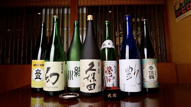 常時100種以上のお酒を完備!特に日本酒と焼酎には力を入れており、定番から珍しい銘柄まで、自慢のラインナップでお届けいたします。長年取引のある酒屋さんから仕入れているので、お手頃な価格でのご提供が可能◎日本酒では「獺祭」、「久保田千寿」、焼酎では「魔王」、「村尾」がおすすめです。