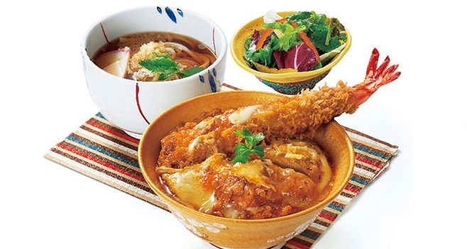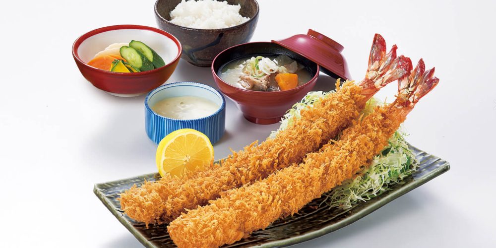 ランチはヒレかつや海老フライなど豪華な定食が揃い、どれも食べ応え抜群。ご飯は白米や雑穀米から選べ、味噌汁は豚汁など好みに合わせて選択可能。さらにご飯・キャベツ・お新香はおかわり自由で、しっかり食べたい人にも嬉しいサービスが充実しています。