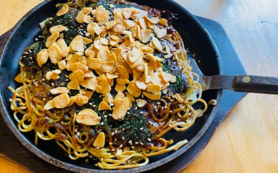 当店自慢の広島府中焼きは、パリパリの麺と豚バラを使用した一品です。鉄板で提供されるため、温かいままでお楽しみいただけます。サイドメニューも豊富で、居酒屋感覚でお楽しみいただけるのが特徴です。