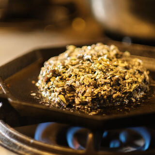 「お好み焼き」は、生地や具材を分けた味わいの異なる2種類をご用意しております。自家製ラードで煮詰めた外はカリッと中は柔らかなカルニタスを使った“豚”、スルメイカの出汁やパウダー、さらに肝や墨まで使った真っ黒な生地の“烏賊”!