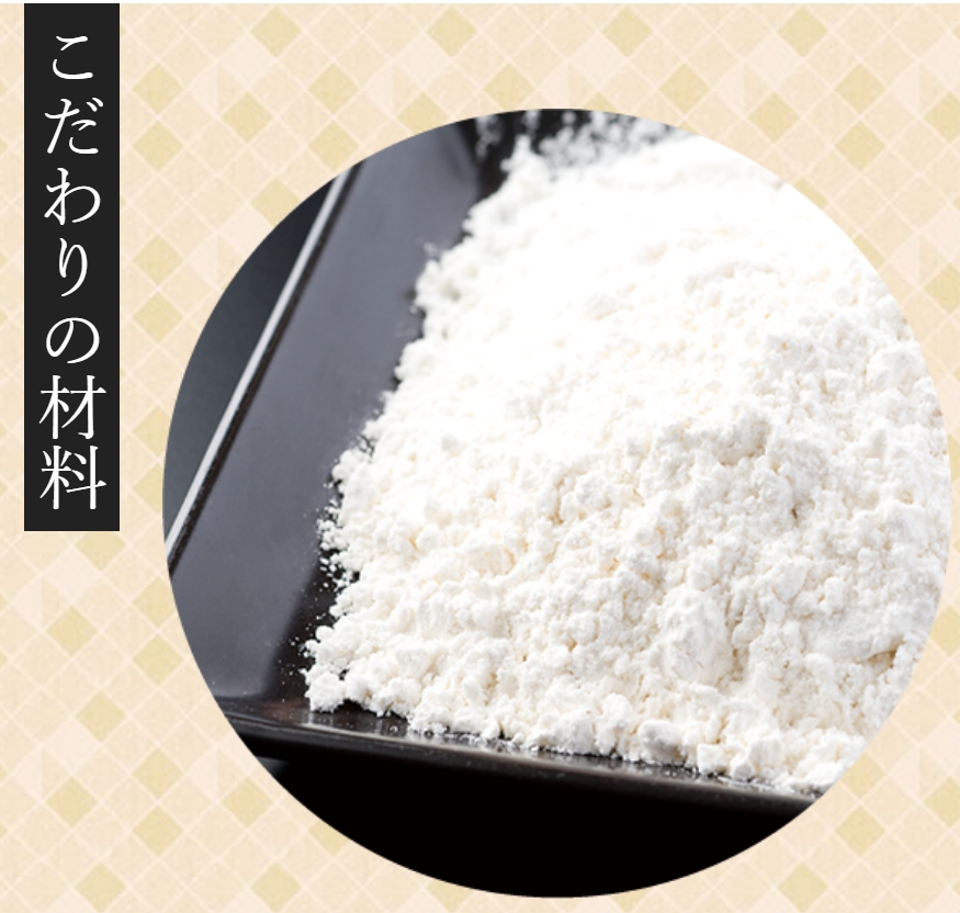 きん太の生地は、国内産の小麦からつくられた薄力粉と、中力粉の2種類を使用。これをきん太秘伝の比率で配合することで、粉それぞれのグルテンの特徴を巧みに引き出しています。