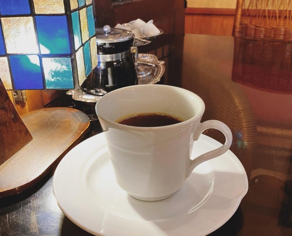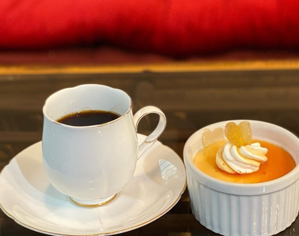 深煎りコーヒーを氷とシェーカーで泡立てたシナモンシェケラートや、コクのあるマサラチャイなどドリンクメニューが豊富。手作りクレープやコーヒープリンなどのスイーツも評判で、アーケードを眺めながらくつろげる落ち着いたカフェです。