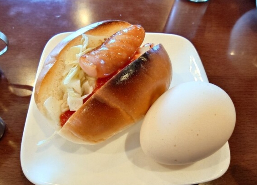 こんがり焼かれたコッペパンに粗挽きウインナーとキャベツを挟んだホットドッグや、半熟具合が絶妙な茹で卵など、昔ながらの喫茶店らしい王道ランチが楽しめる。素朴ながらコクのある味わいで、どこか懐かしくホッとする時間を過ごせるのが魅力だ。