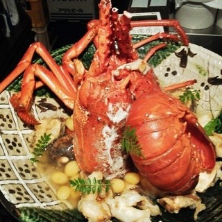 伊勢海老、スッポン、A5ハネシタ、ウニ、アワビなどお好みを合わしてその場でアレンジしながら料理していきます。他店にはない豪華素材を怒涛の如くお出しするコースです。うおじでは、大変好評いただいております