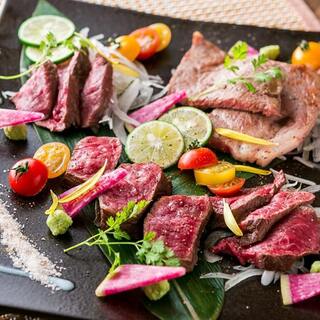 牛ハラミは内臓系だが赤身肉に近い食感。柔らかく脂肪も豊富で濃い味があります。その他、黒毛和牛A5イチボ肉の網焼きも人気!やわらかさと旨みがある赤身肉ですがやわらかいだけでなく肉本来の噛み心地がある希少肉です!