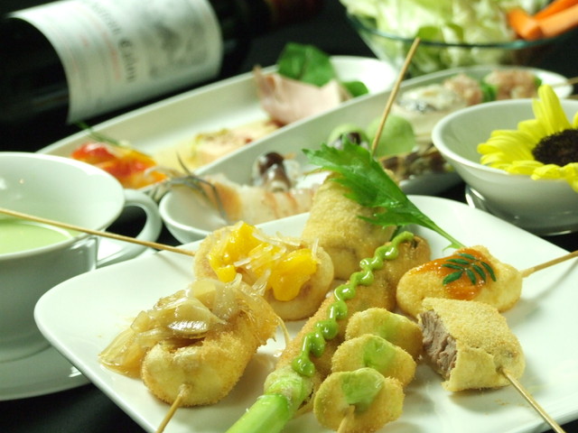 【串柾】自慢の『おまかせコース』特注のパンを削ってつくるパン粉にオリジナルブレンドの油、旬の魚貝や黒毛和牛など厳選食材を使用した逸品