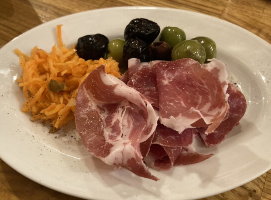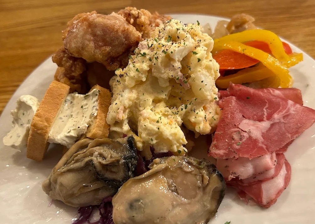 こじんまりとした店内と穏やかなご主人が迎えてくれる、居心地抜群の昼飲みスポット。明るいうちからカールスバーグの生ビールやワインを片手に、前菜盛り合わせをゆったり楽しめます。ボリューム満点でコスパも高く、一皿でしっかり満足できるのも魅力です。