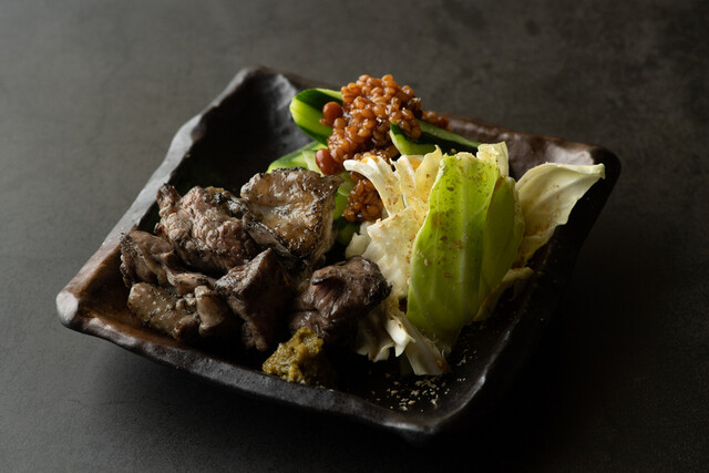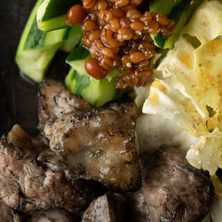 炭火で焼き上げます!!地鶏もも焼き!宮崎を代表する郷土料理!鶏油を使い一般的な焼鳥とは違った手法で黒く風味豊かに焼き上げます!!コリコリの皮までが人気でお酒でもお米でも相性が抜群です!