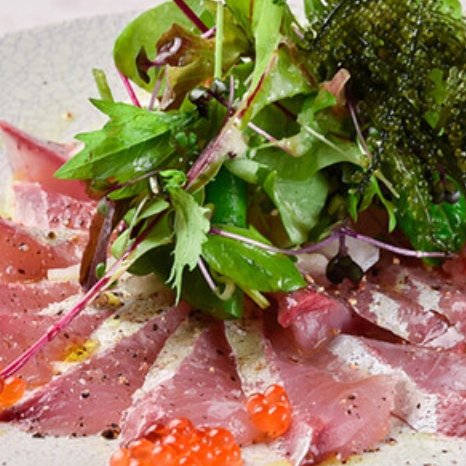 当店で使用する食材は地産地消、糸島産のものを取り入れております。特に13品の料理が日によって変わる”黒板メニュー”が自慢ですので、ご来店の際はぜひチェックしてみてください◎その他、糸島沖で獲れた鮮魚で作る「本日の地魚のカルパッチョ」や、鶏ガラ、昆布、しいたけなどの出汁が効いた「塩らーめん」もおすすめです!