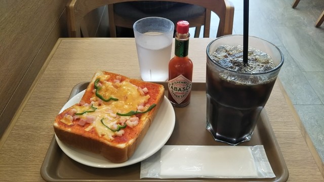 どこかなつかしさを感じるピザトースト。ピーマンとベーコンにたっぷりのチーズをのせてトーストしています。トマト味のピザソースとチーズの組み合わせは文句なしで相性抜群。コーヒーとの相性もぴったりなので、ぜひご一緒にお楽しみください!