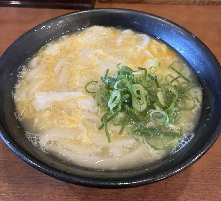 卵とじにすることで、スープのまろやかさがアップ。卓上の天かすを加えればコクも増し、自分好みにアレンジできるのが嬉しいポイント。やさしい味に癒されます。