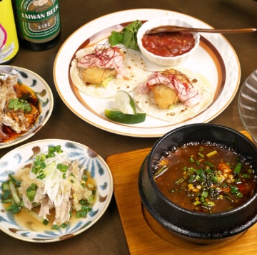 当店では宴会に最適な飲み放題付きコース2種類と、飲み放題単品コースをご用意!4,500円プランはコスパ抜群◎前菜は四川風よだれセセリか生姜のネギ塩セセリか選べ、麻婆豆腐、チキン南蛮桜タルタルなどが楽しめます。5,500円のプランでは、マンゴーエビマヨかチキン南蛮桜タルタルからお好きなメインを選択可能!