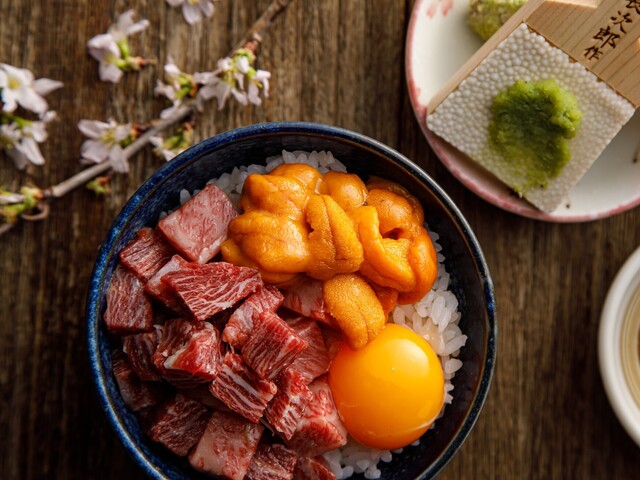 新名物として注目を集めるのが、黒毛和牛の鉄板ステーキ。希少部位トモサンカクを豪快にカットし、八丁味噌ベースの甘辛味噌でじっくり焼き上げます。卵黄に絡めれば、コクと旨みが一層引き立つ味わい。馬肉専門店ならではの懐の深さを感じる逸品です。
