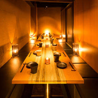 店内は木目調のお洒落な和モダン空間。落ち着いた雰囲気で、お食事をお楽しみいただけます。お席は全席完全個室となっており、会社帰りのちょい飲みや、接待、女子会、歓迎会、送別会、最大100名様まで着席可能な大宴会まで、あらゆるシーンでご利用頂けます!少人数様から団体様まで大歓迎です!