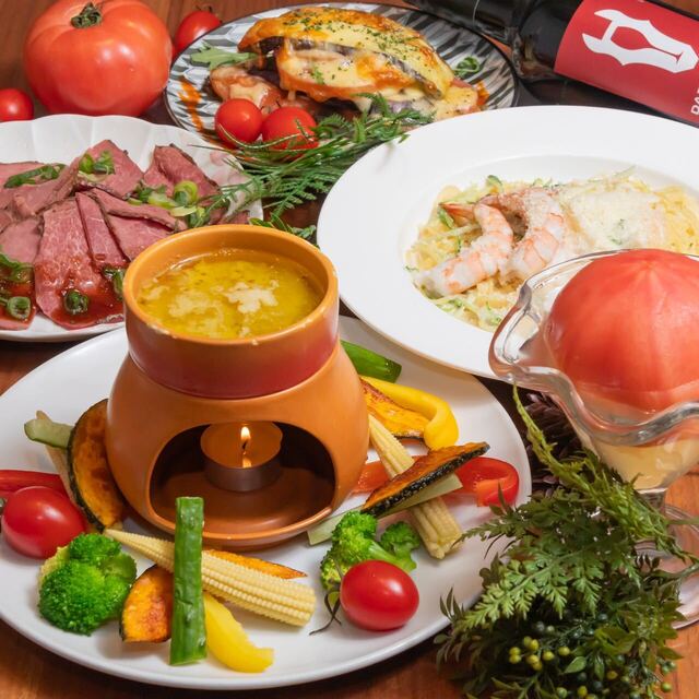 「旬野菜のバーニャカウダ」がついたお得なコースは、お野菜と魚介類が中心の全9品、さらに飲み放題もついて2,980円!さらに、寒い季節にはお鍋付きコースもオススメです★豚肉海鮮トマト鍋、豚肉の豆腐豆乳鍋、地鶏の水炊き鍋から選べる全8品のコースは飲み放題付きで4,400円。ワイワイみんなでお鍋をつつきながら、会話も盛り上がること間違いなしです♪女子会や記念日など、いろいろなシーンでご利用ください。