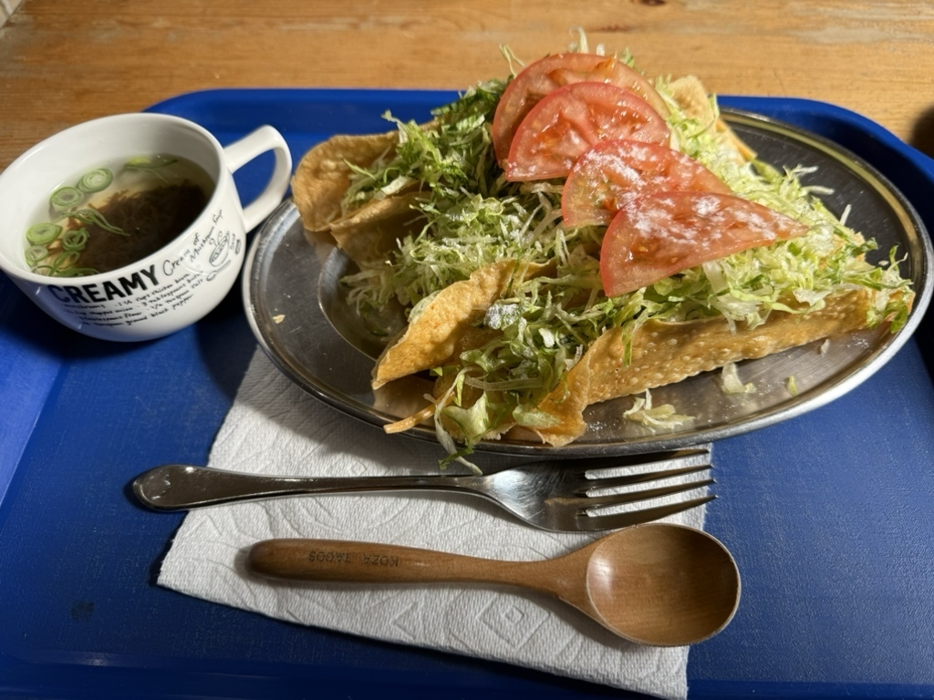 タコスの生地はパリパリ食感、サルサソースはフレッシュで軽やか。野菜と肉味噌が絶妙に絡み合い、何度でも食べたくなるクセになる味わいです。
