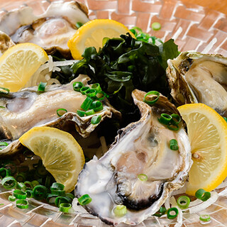 「サザエのつぼ焼き」や「白子ポン酢」「活き鯛の炙り刺身」…新鮮な魚貝の魅力が味わえるメニューを豊富に取り揃えております。なかでも、一年中お楽しみいただける「殻付き牡蠣」は、まろやかでコクのある一押しメニュー。生牡蠣でそのみずみずしさを味わうもよし、焼き牡蠣で香ばしさとともに味わうもよし、思い思いにご満喫いただけます。