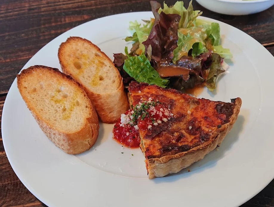 サクサクのパイに具材がぎっしり詰まったキッシュや、チーズとろける庄原産トマトパスタなど、種類豊富なランチが人気。サラダ・ドリンク付きでコスパも良く、満足度の高いひとときを提供してくれます。