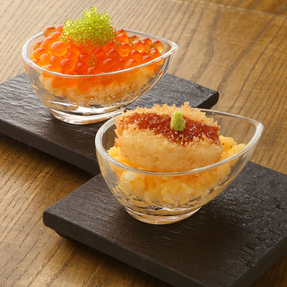 要予約。卵黄だけを贅沢に絡めたご飯の上に、フォアグラといくらをのせます。一度食べたら忘れられなくまります。