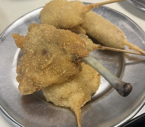 地元の常連客に愛される、串カツの名店。楽しめる多彩なメニューは、牛肉、レンコン、ナスから大エビまでバラエティに富みます。揚げたての魅力と、アットホームな店内の雰囲気が、大阪の食文化を存分に体現しています。